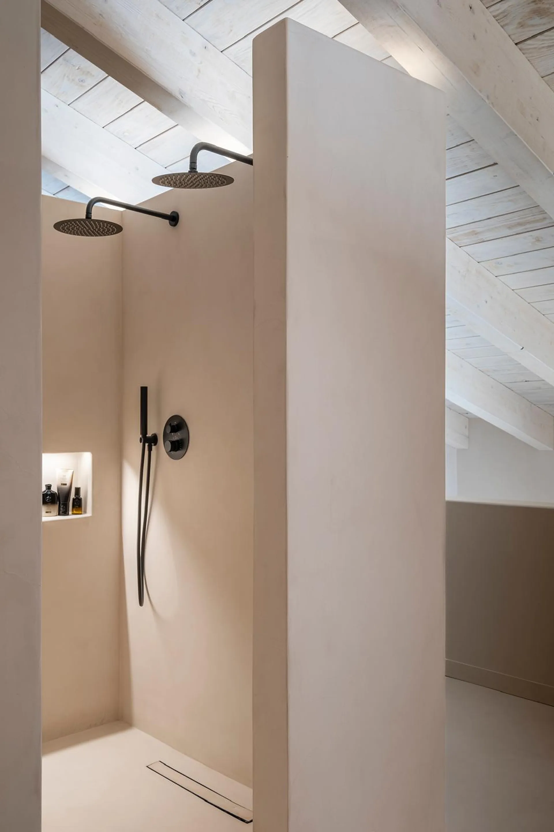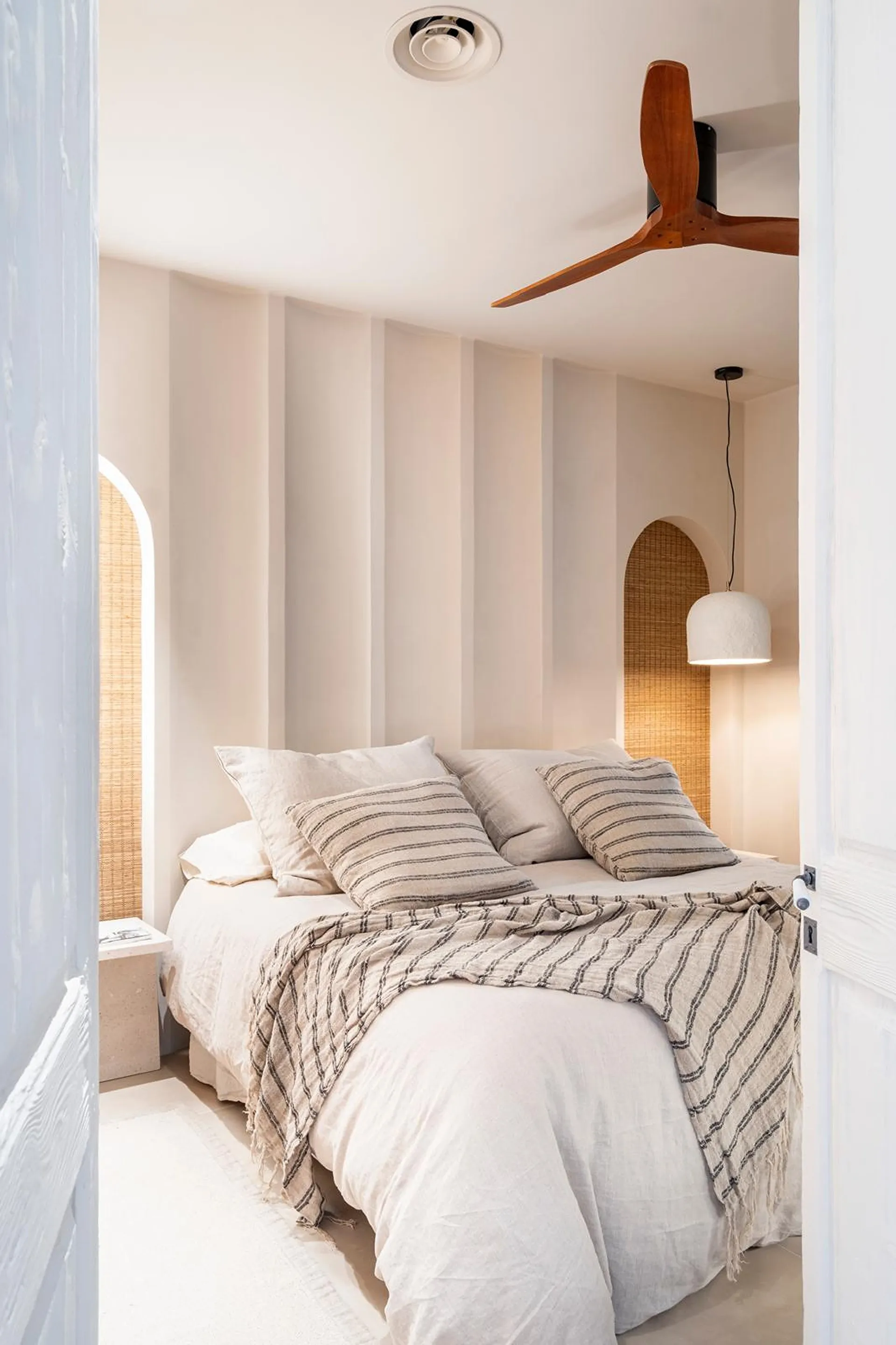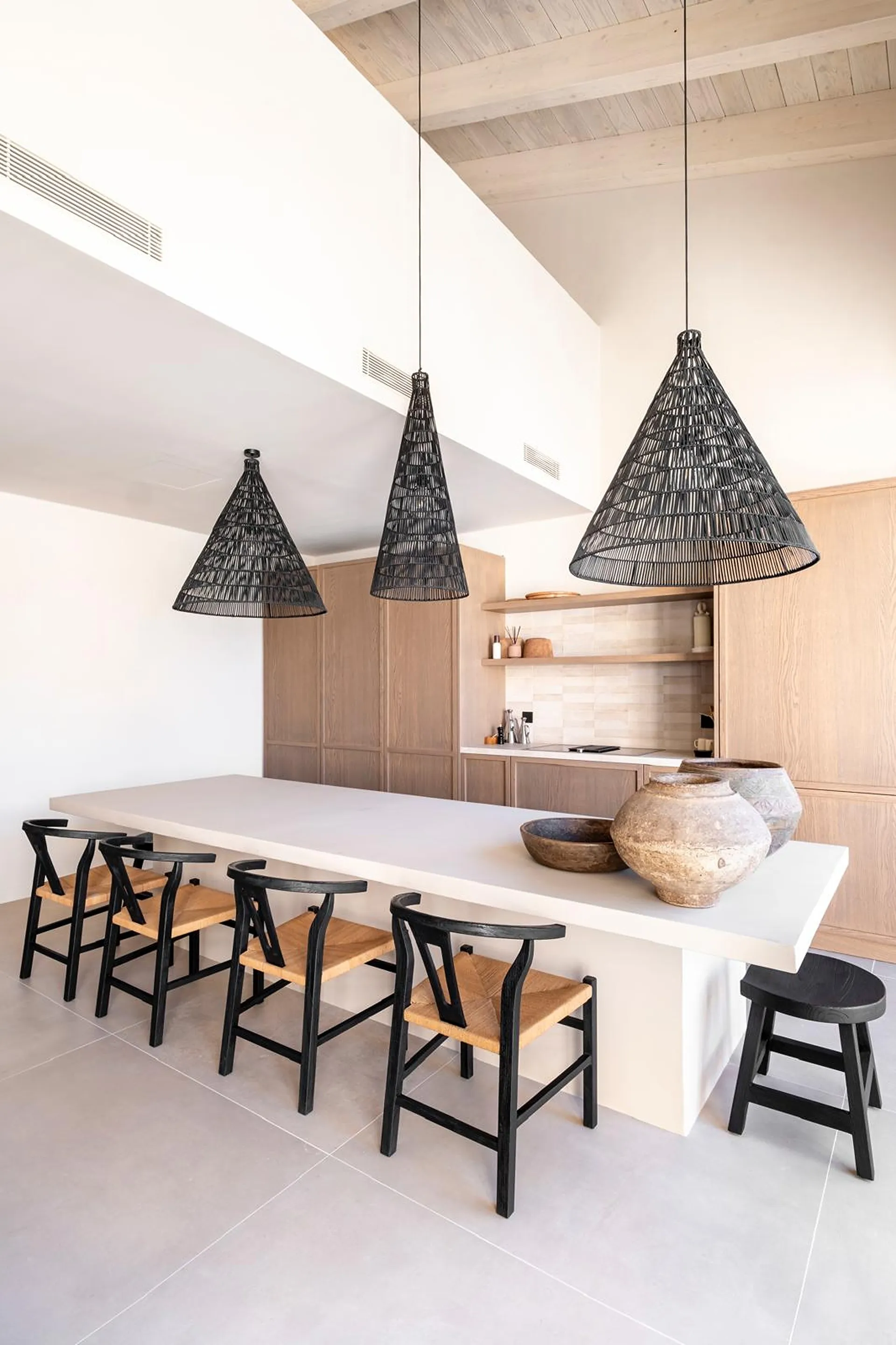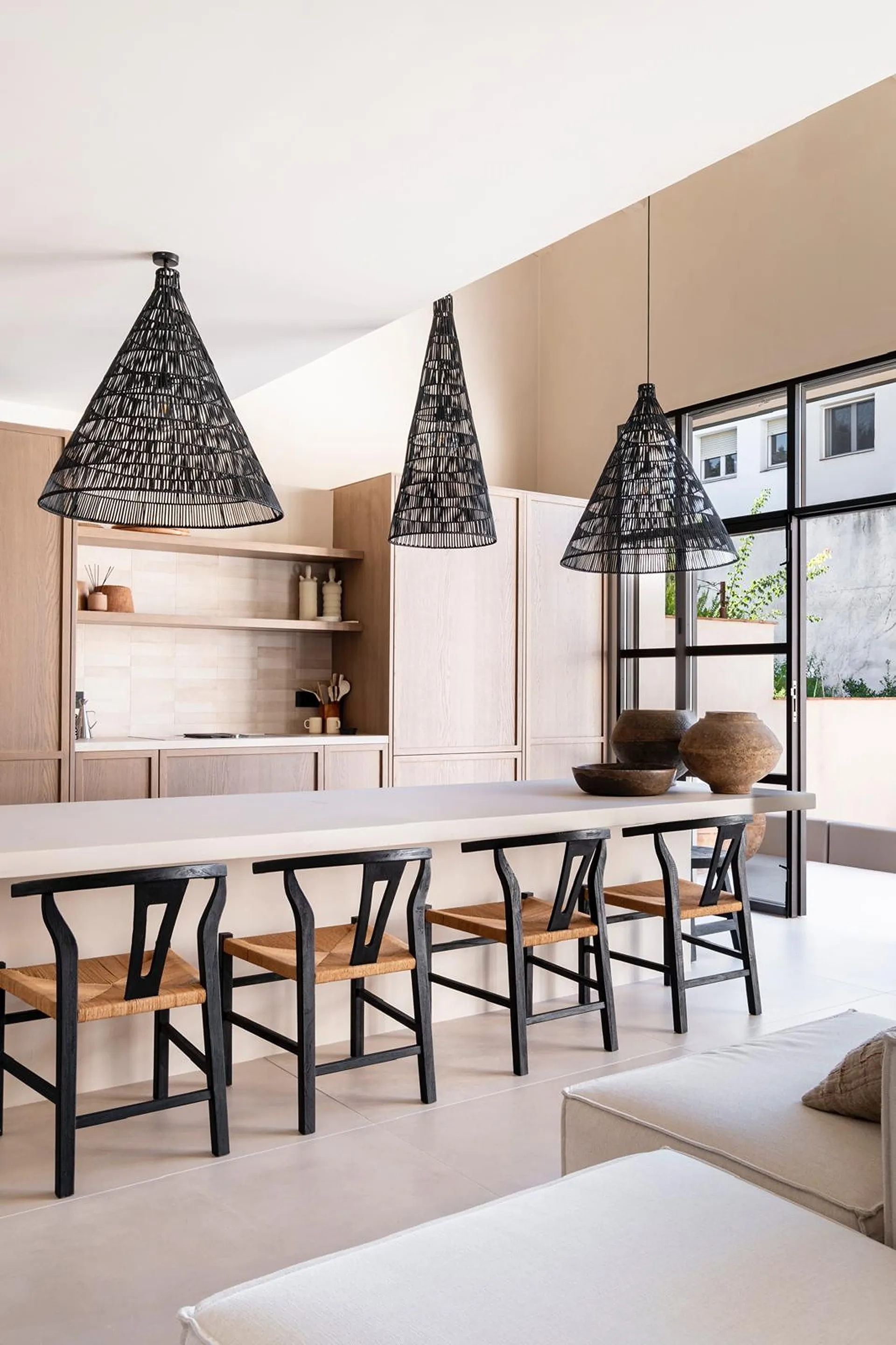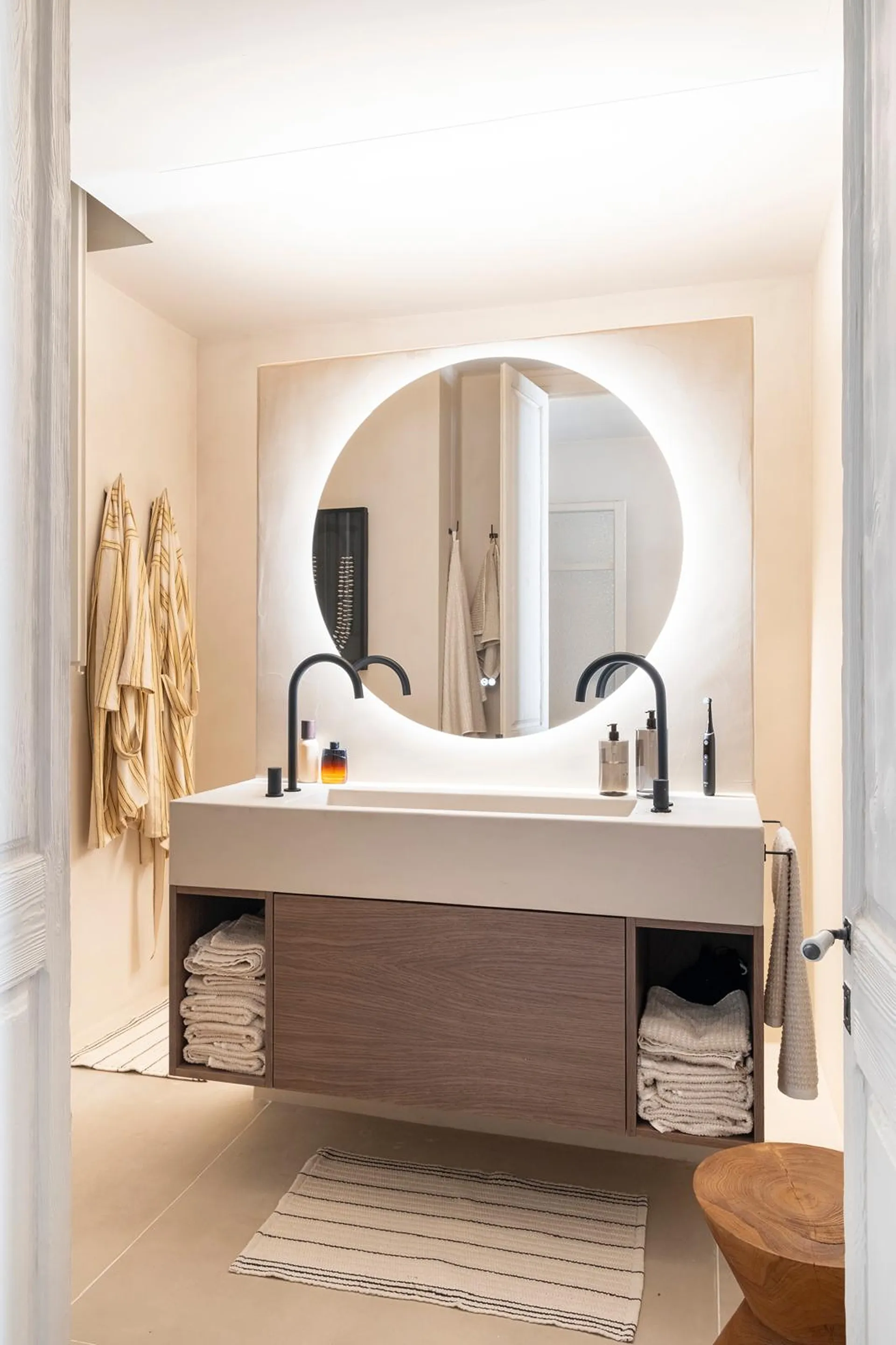 L’interiorisme aposta per una selecció acurada i reduïda de materials, com el microciment i la fusta, que defineixen un estil mediterrani contemporani i confereixen calidesa a l’habitatge.