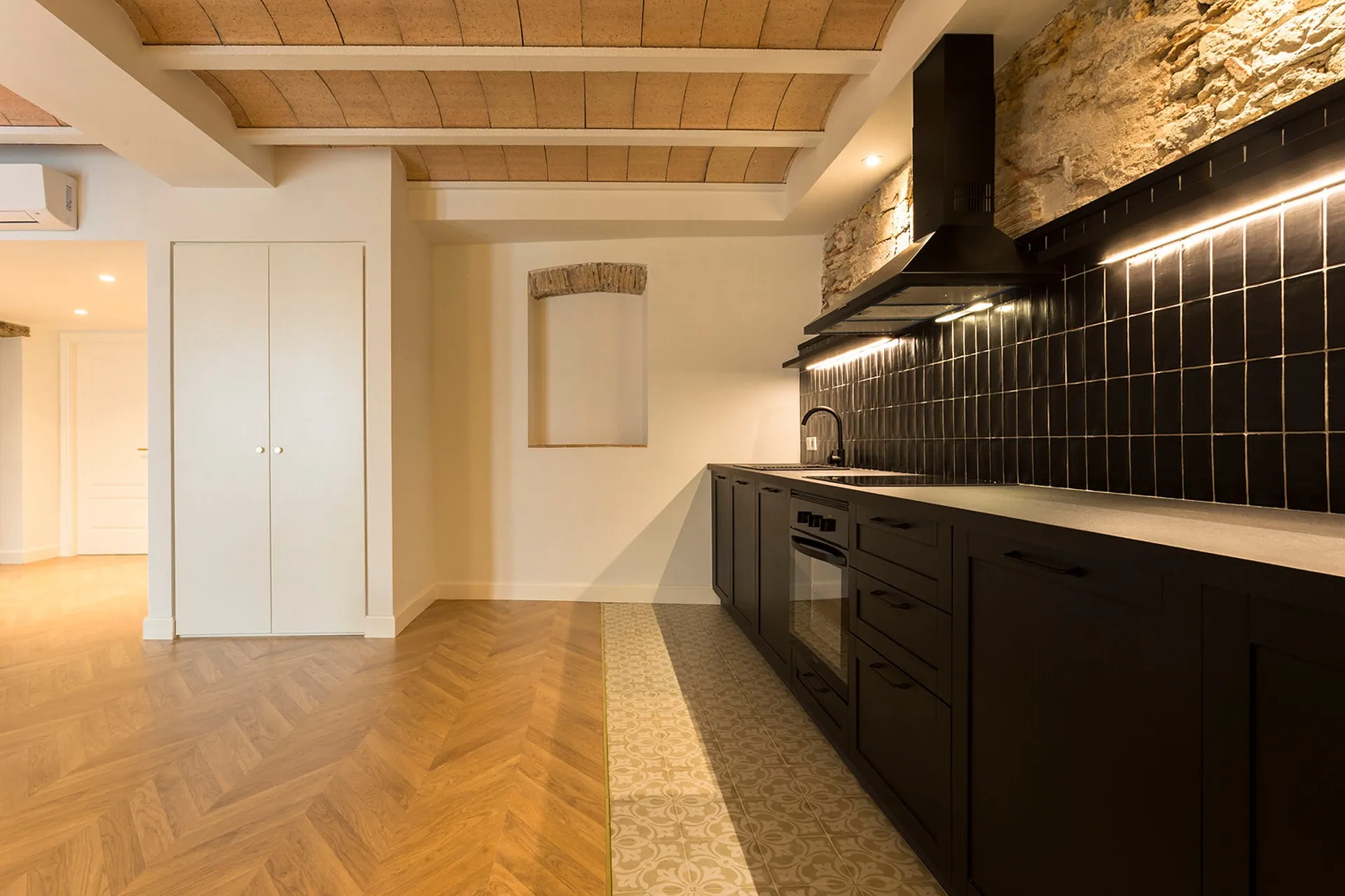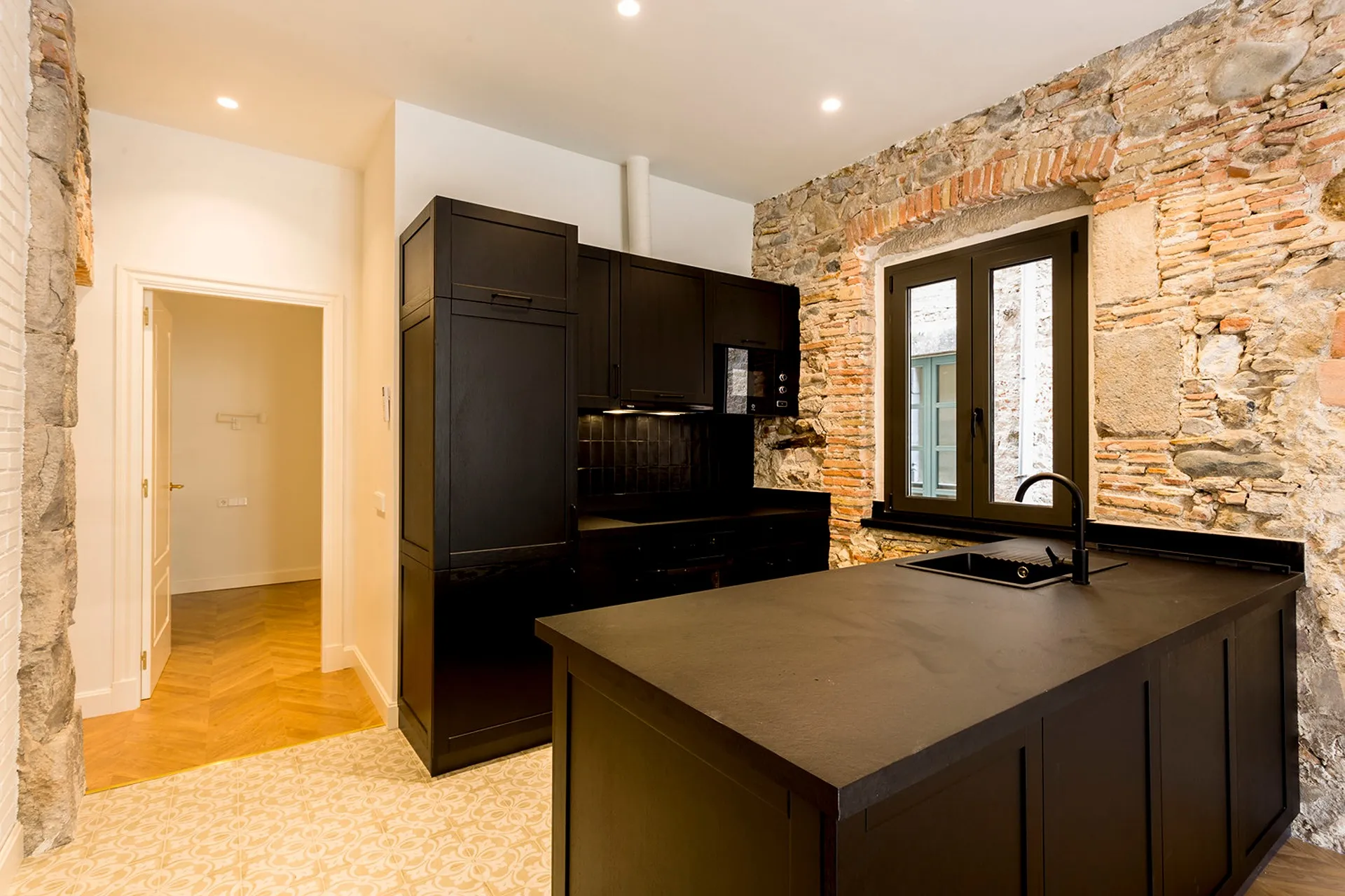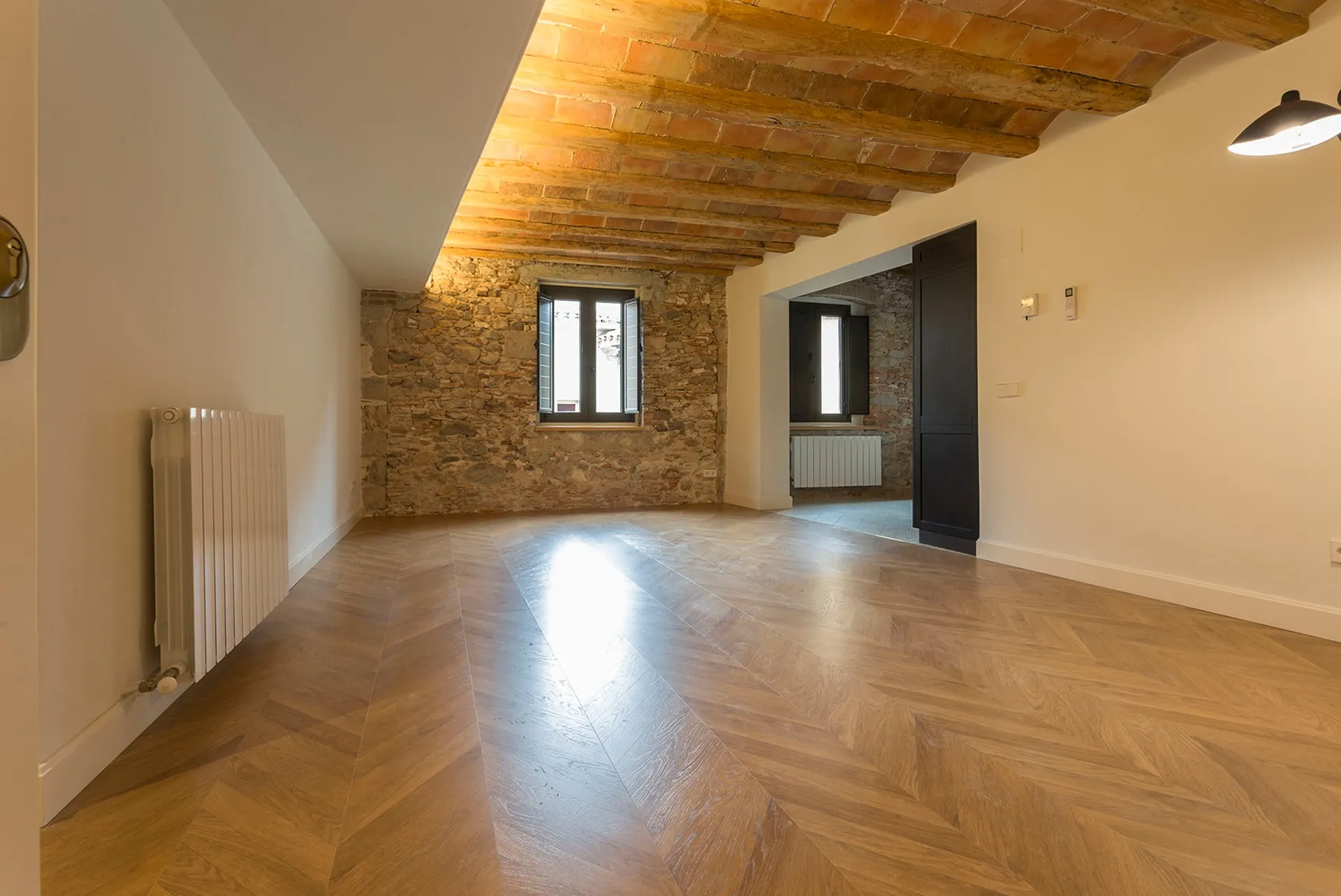 Comprehensive rehabilitation of a historic building in the center of Girona. This is an emblematic building in the Old Town of Girona, believed to have housed the ancient Royal Court of the city. The property, with the ground floors still in use as commercial premises, was in a state of general degradation in the apartments, affecting nearly 80% of the constructed area.