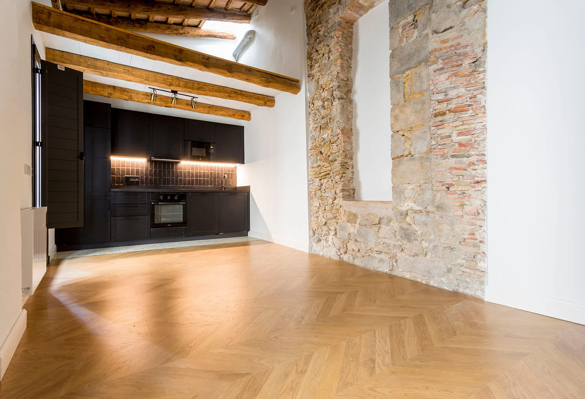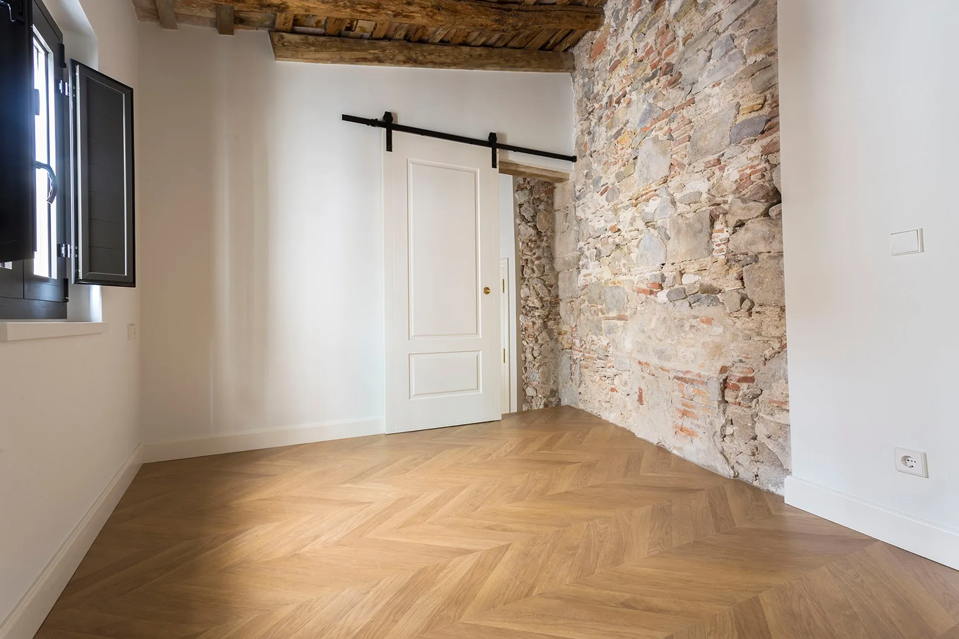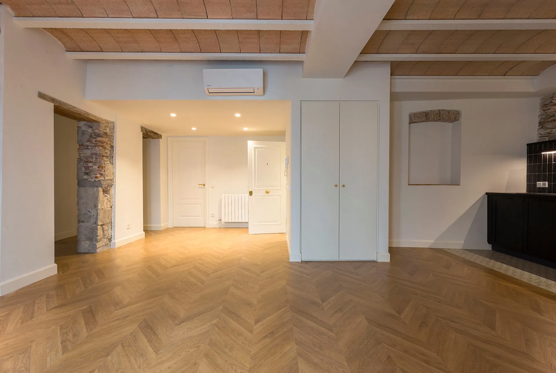 Comprehensive rehabilitation of a historic building in the center of Girona. This is an emblematic building in the Old Town of Girona, believed to have housed the ancient Royal Court of the city. The property, with the ground floors still in use as commercial premises, was in a state of general degradation in the apartments, affecting nearly 80% of the constructed area.